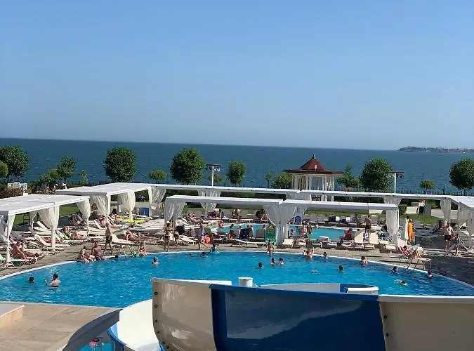 Private Apartment 49 In Prestige Fort Beach Hotel van 77 m^2 ligt binnen 14 minuten lopen van Sunny Beach en biedt een massagekamer, een sauna en een buitenzwembad. Gasten kunnen ontspannen en genieten van het uitzicht op de zee vanaf een terras van het strand appartement in Sveti Vlas.